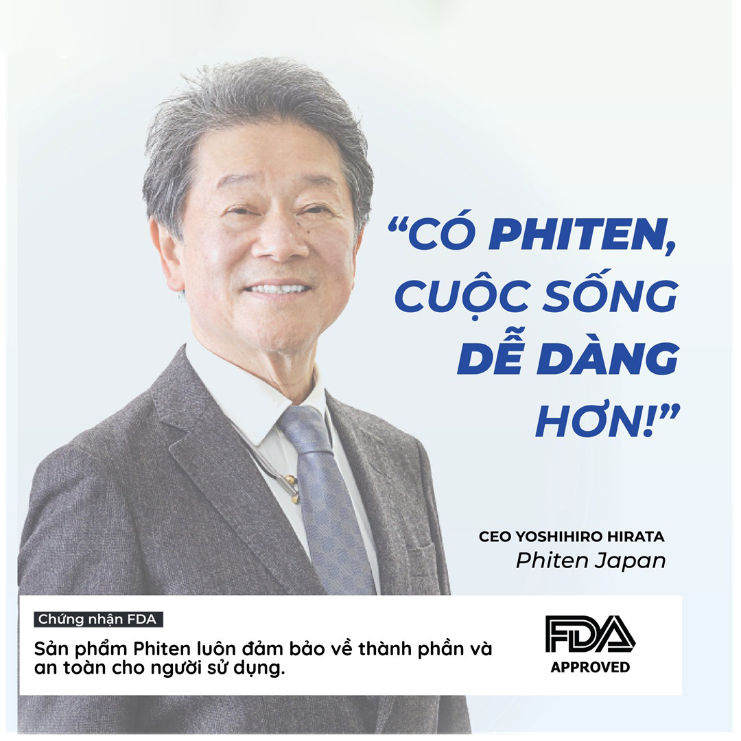 Phiten đã thành công khi tạo ra công nghệ độc quyền trên thế giới được FDA chứng nhận. Qua đó tạo ra nhiều sản phẩm chăm sóc sức khỏe được nhiều người tin dùng. Đây chính là nguồn động lực to lớn để chúng tôi tiếp tục nghiên cứu, phát triển công nghệ và tạo ra những sản phẩm giúp tối ưu hóa cuộc sống của mọi người trên toàn thế giới."
