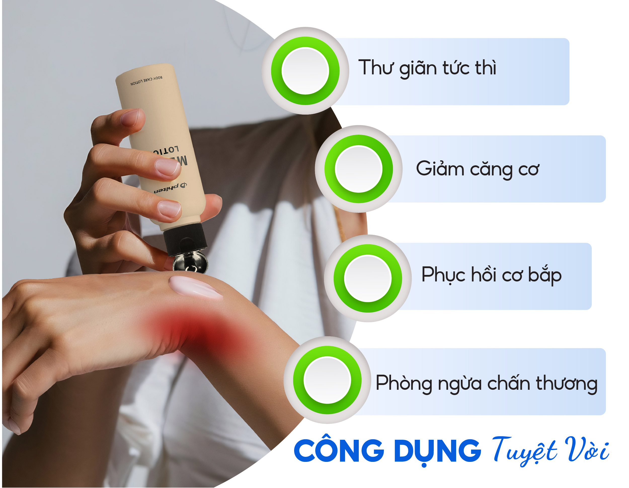 Dưỡng thể thế hệ mới giúp thư giãn cơ bắp nhanh chóng và phục hồi năng lượng cơ thể hiệu quả. Có thể sử dụng hằng ngày, hoặc trước – trong – sau khi tập luyện thể thao để giúp cơ thể phục hồi nhanh
