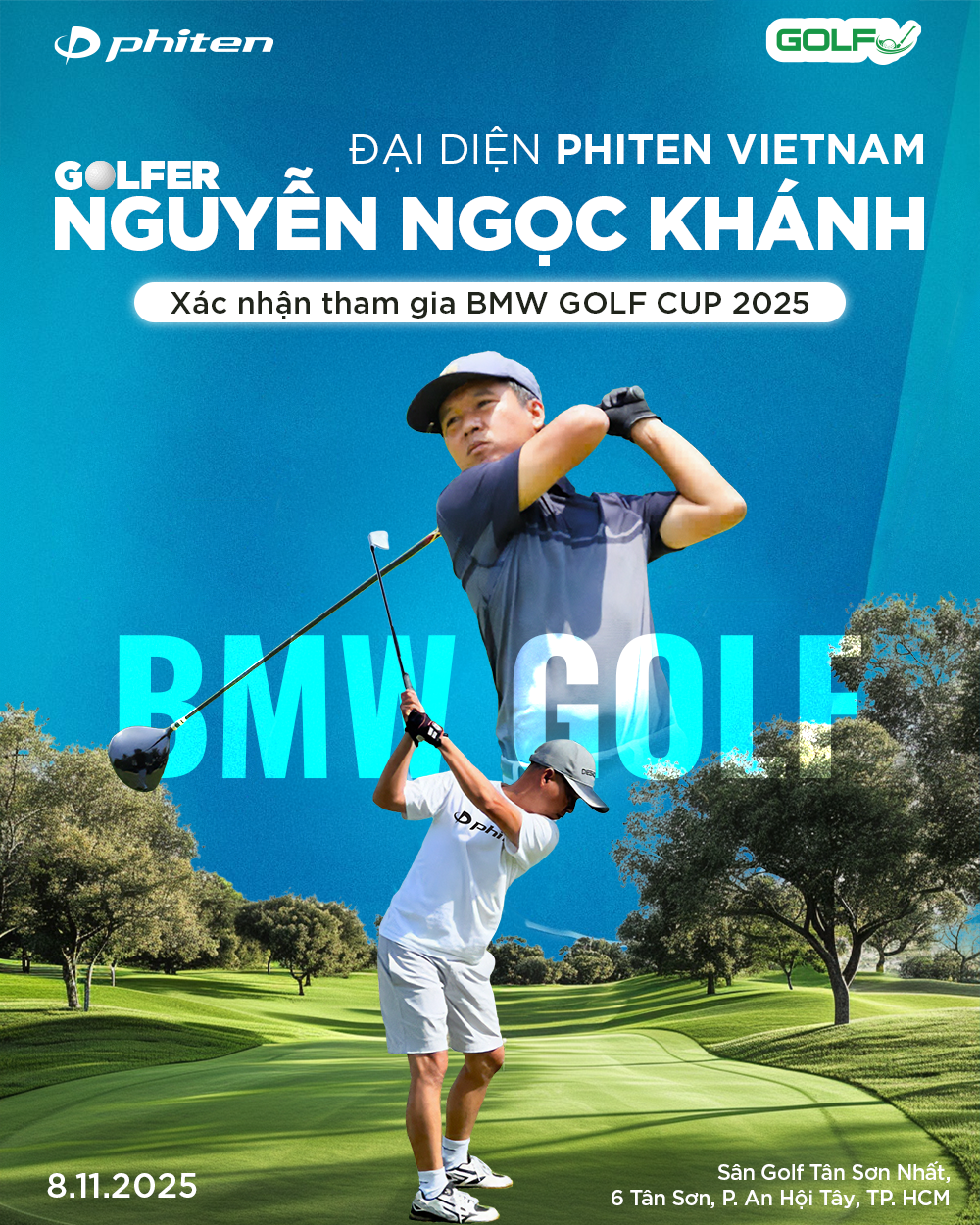 Giải BMW Golf Cup 2025 chính thức trở lại ngày 8/11/2025. Đại sứ thương hiệu Phiten Nguyễn Ngọc Khánh – Vô địch Bảng B BMW Golf Cup Final 2024 Vietnam – tiếp tục góp mặt tại giải đấu với phong độ đỉnh cao và tinh thần bản lĩnh.