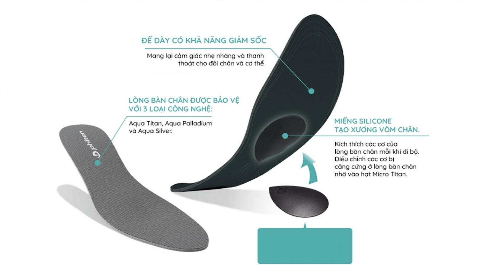 Được thiết kế đặc biệt với công nghệ 3D ôm sát chân, hỗ trợ vòm chân, ngăn ngừa mồ hôi và vi khuẩn.
