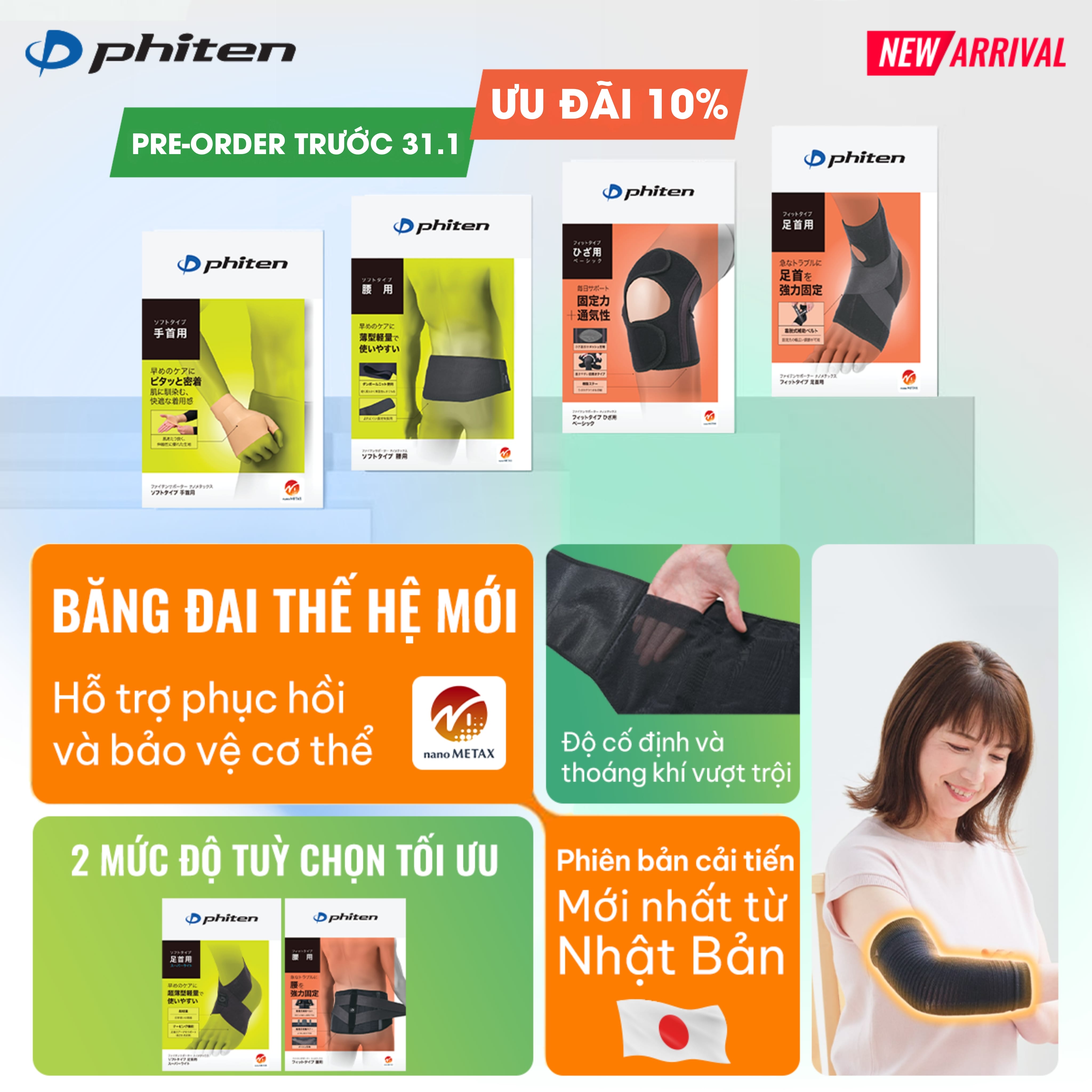 Đặc biệt, sản phẩm hiện đang mở PRE-ORDER với ưu đãi giảm 10%, dành cho khách hàng mong muốn sở hữu sớm thế hệ supporter mới nhất của Phiten. Đặt trước không chỉ giúp bạn giữ giá tốt, mà còn đảm bảo có đúng size phù hợp ngay khi sản phẩm chính thức về hàng.