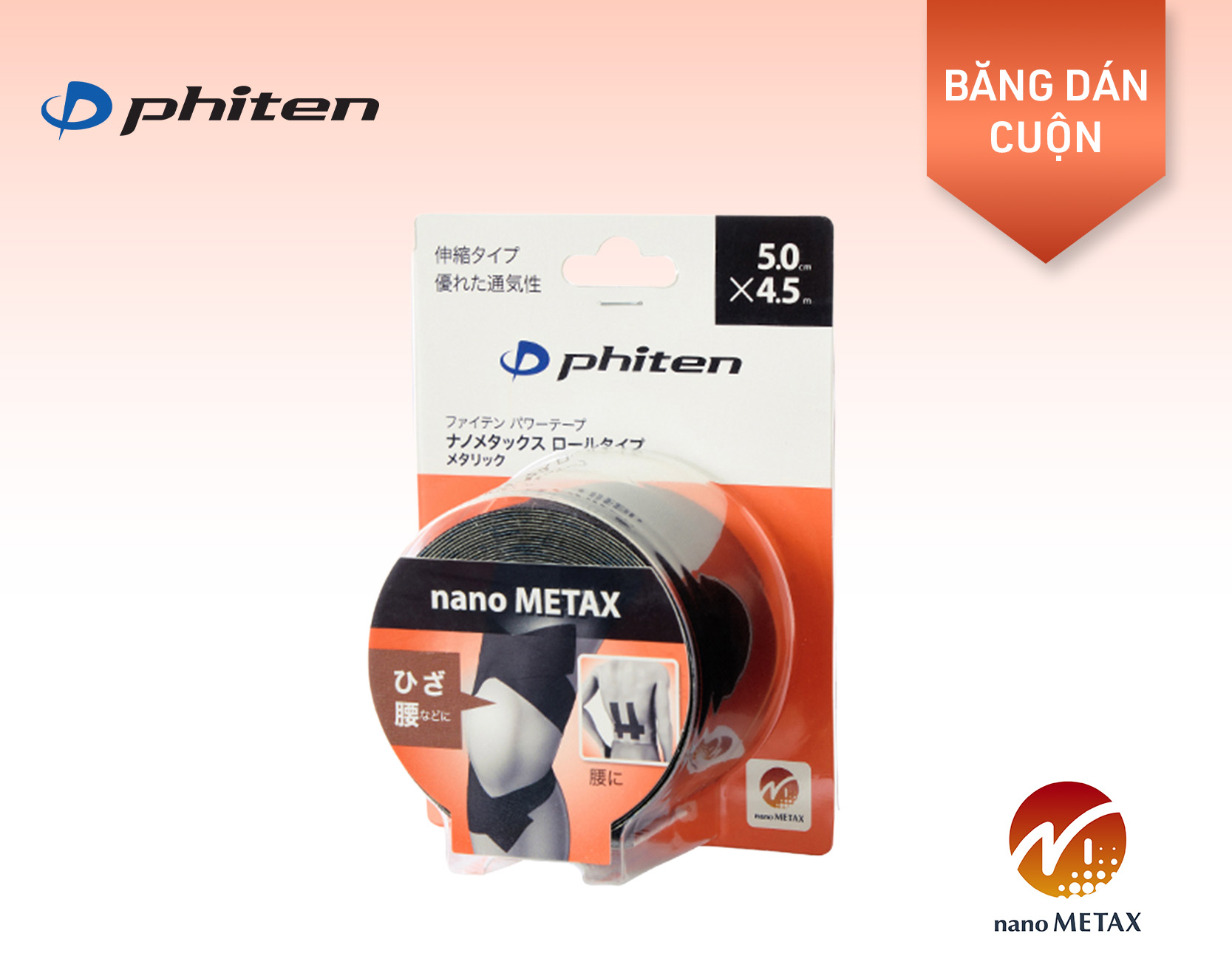• PHITEN POWER TAPE nano METAX ROLL METALLIC là băng dán hỗ trợ cơ bắp dạng cuộn, ứng dụng công nghệ nano METAX tiên tiến, giúp hỗ trợ cơ thể khi vận động.