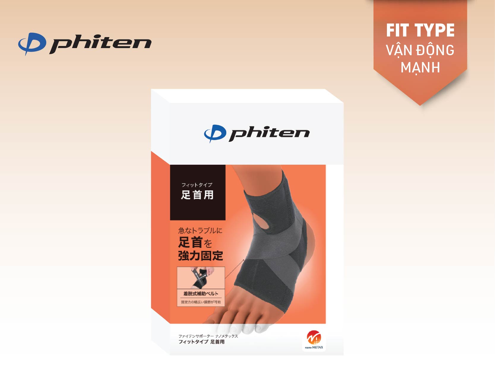 PHITEN Nano METAX Ankle Supporter Fit Type được cải tiến với thanh cố định dọc hai bên cổ chân, giúp tăng độ vững chắc và khả năng hỗ trợ cho khớp cổ chân. Thiết kế này hạn chế hiệu quả chuyển động ngang của mắt cá chân, phù hợp cho cả trường hợp đau mãn tính lẫn đau đột ngột như bong gân.