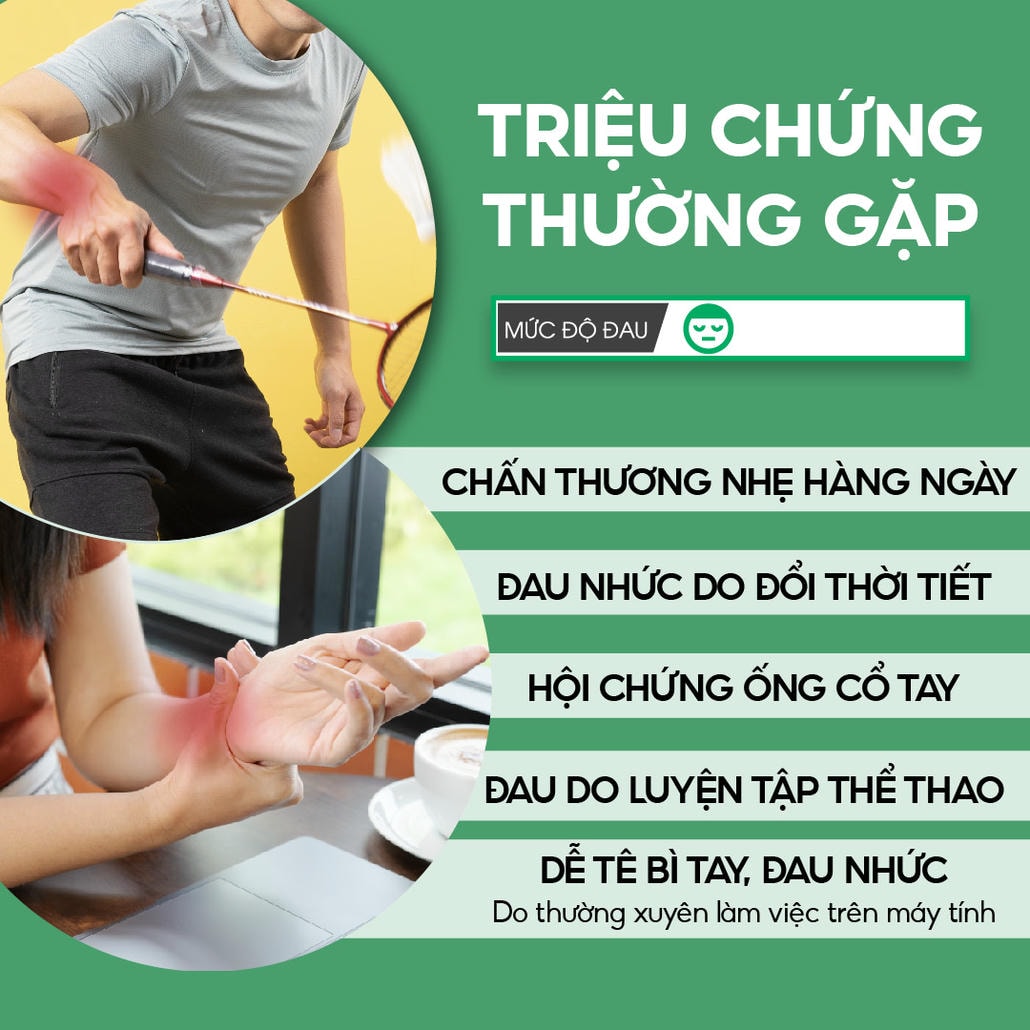 - Hỗ trợ phục hồi các bệnh viêm khớp, viêm gân, thấp khớp và chấn thương liên quan đến cổ tay.