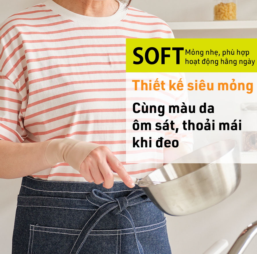 Thiết kế vừa vặn với độ co giãn cao giúp nâng đỡ cổ tay ở mức vừa phải, không gây gò bó hay hạn chế chuyển động. Chất liệu mềm mại, tương tự vải dùng cho đồ lót, tập trung tối đa vào sự dễ chịu khi tiếp xúc trực tiếp với da, đặc biệt phù hợp để đeo trong thời gian dài.