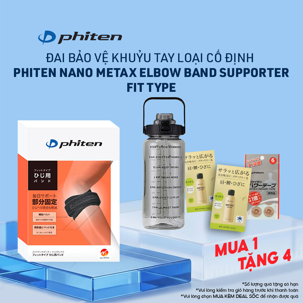 • Đai bảo vệ khuỷu tay Phiten Nano METAX Elbow Band Supporter Fit Type là dạng băng hỗ trợ khuỷu tay, giúp chăm sóc và hỗ trợ chính xác vùng khuỷu tay khi vận động.