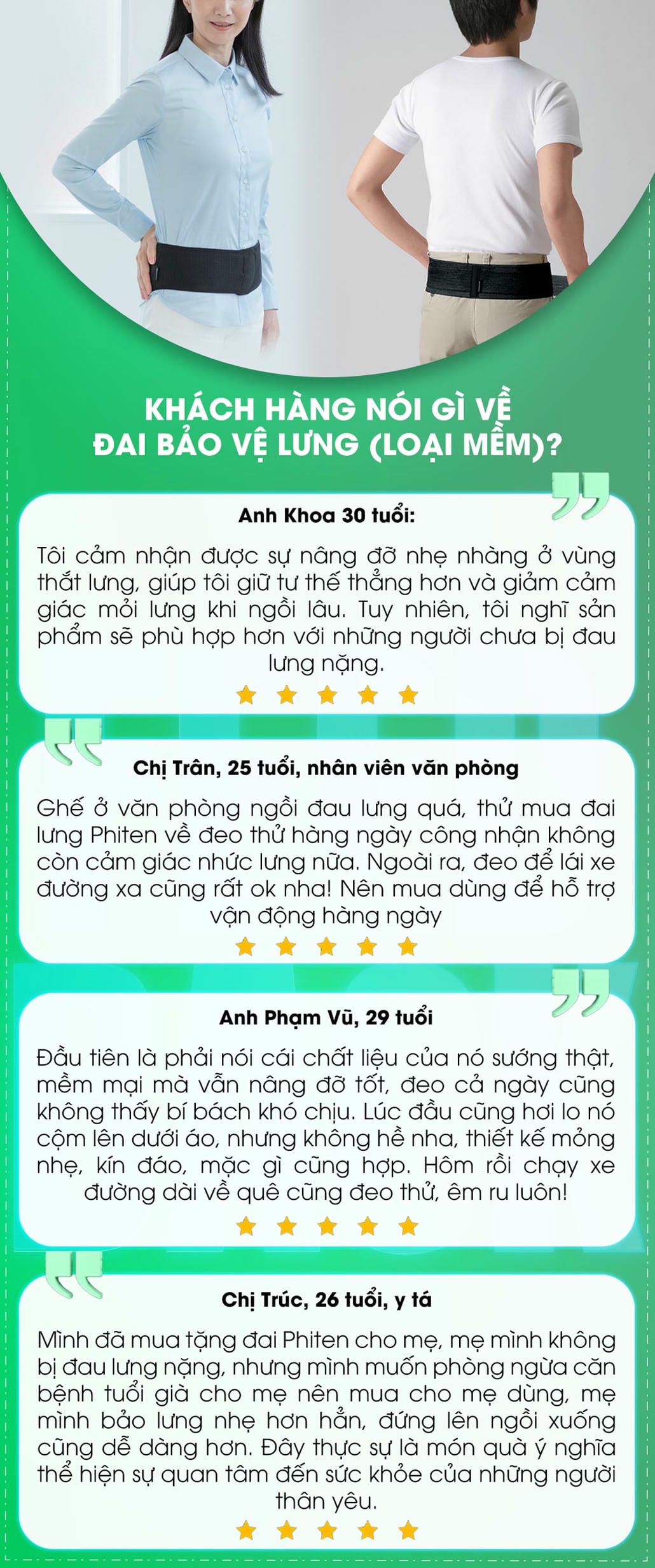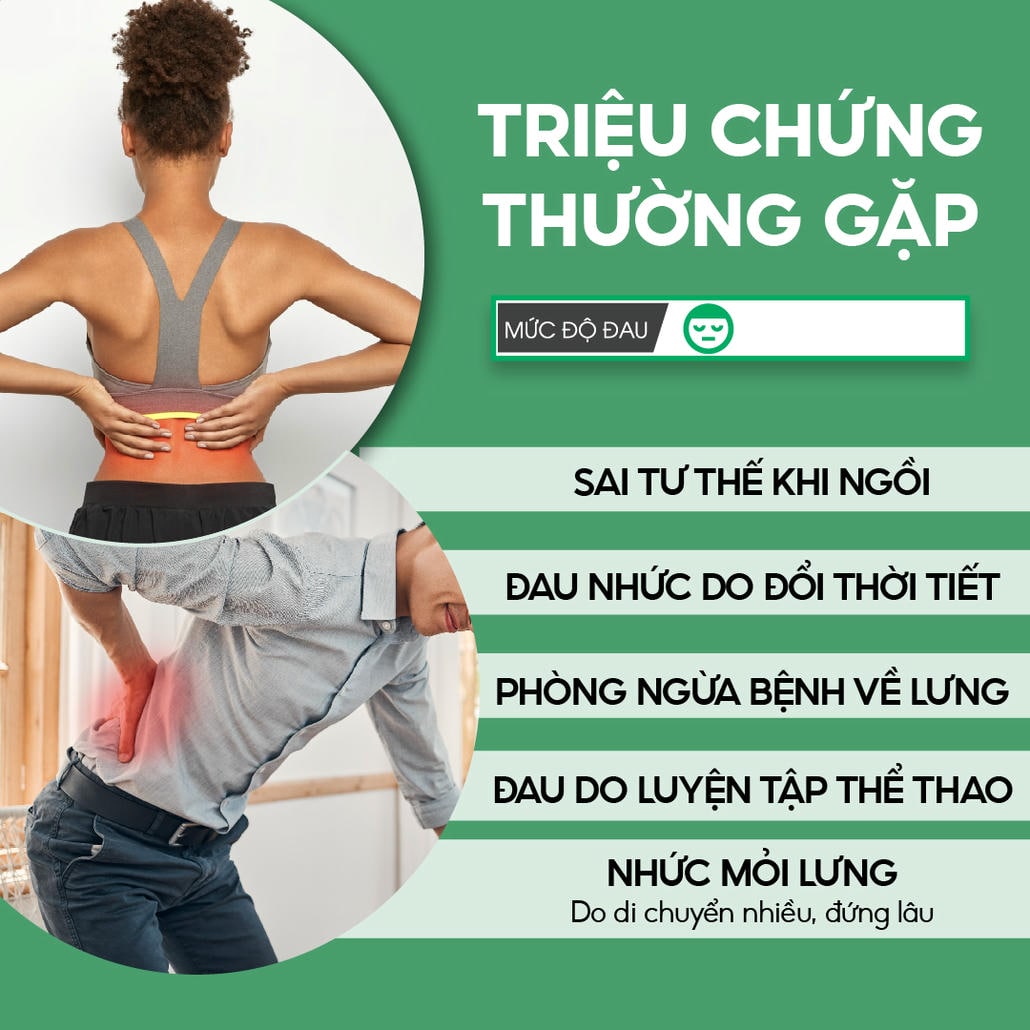 - Hỗ trợ bảo vệ hàng ngày: Có thể sử dụng hàng ngày để hỗ trợ và bảo vệ vùng lưng khỏi các tác động xấu từ môi trường và các hoạt động hàng ngày.