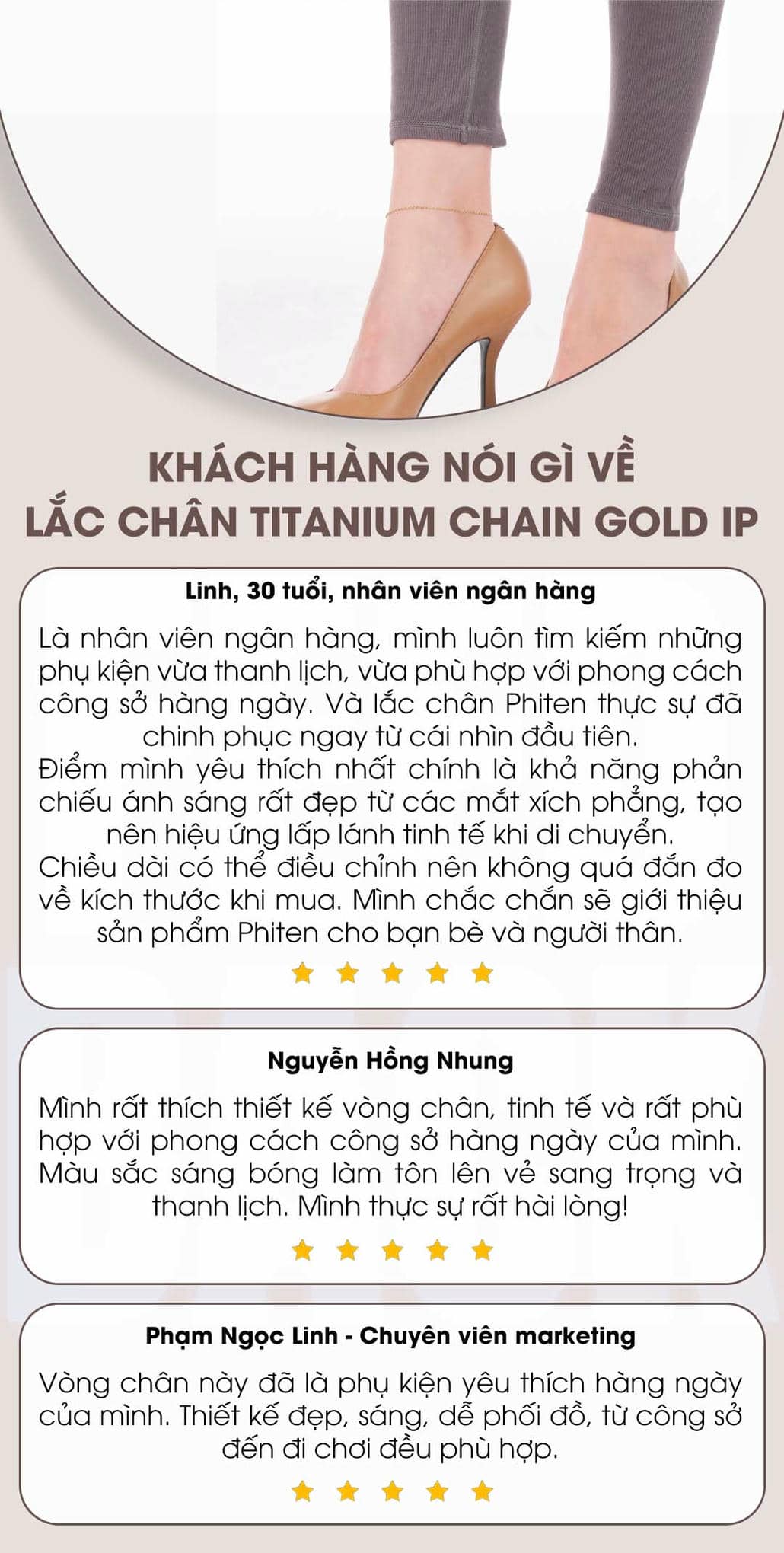 VÒNG ĐEO CHÂN PHITEN TITANIUM CHAIN ANKLET GOLD IP được làm từ Titanium, chất liệu nhẹ, bền và an toàn cho sức khỏe.