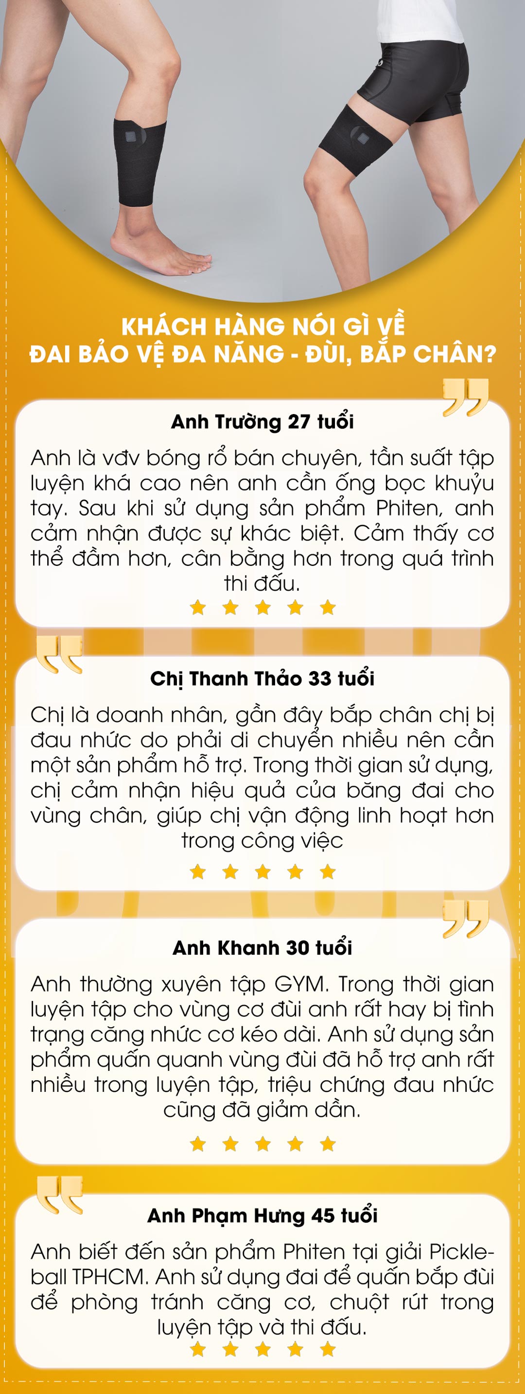 - Sản phẩm giúp hạn chế chấn thương do vận động sai tư thế hoặc tác động lực mạnh lên bắp đùi, bắp chân.