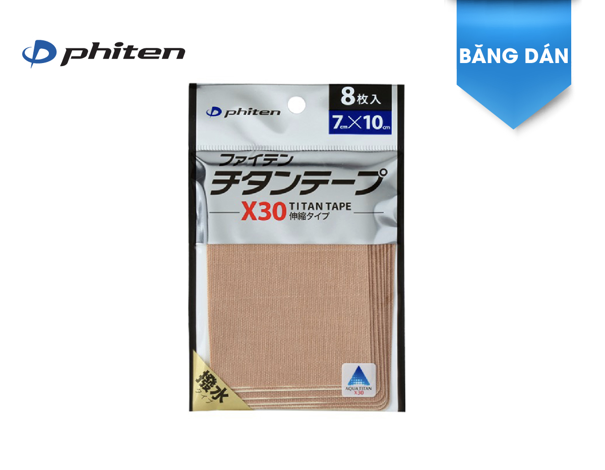 Băng Dán Cơ Loại 8 Tape 7cm X 10cm Phiten Titanium Tape X30 Pre Cut/ 7cm X 10cm