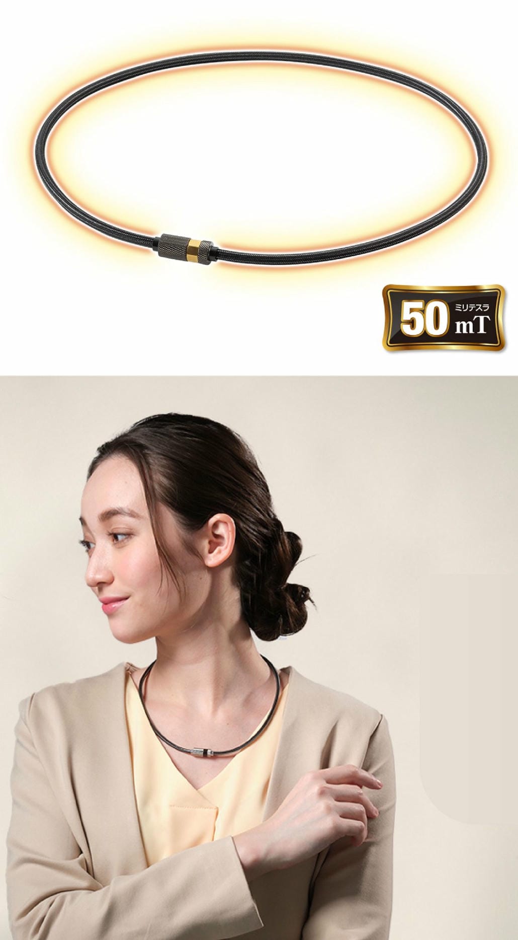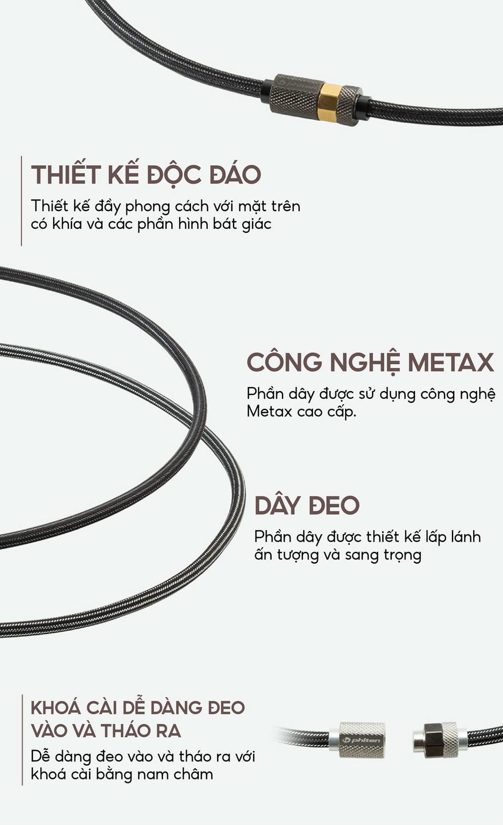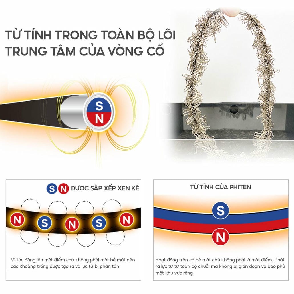 Với khóa nút vặn bằng nam châm, vòng cổ này dễ dàng đeo vào và tháo ra, giúp cải thiện dòng điện sinh học cơ thể nhờ tác động từ trường của công nghệ Metax.