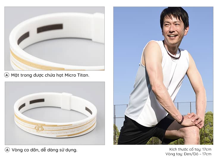 Vòng tay này được nhúng công nghệ Aqua Titan và sử dụng hạt Micro Titanium bên trong, giúp hỗ trợ dòng điện sinh học tự nhiên và mang lại sự thoải mái khi vận động. Không có khóa và với khả năng co giãn tốt, bạn có thể dễ dàng đeo và tháo ra một cách tiện lợi mà không cảm thấy khó chịu.