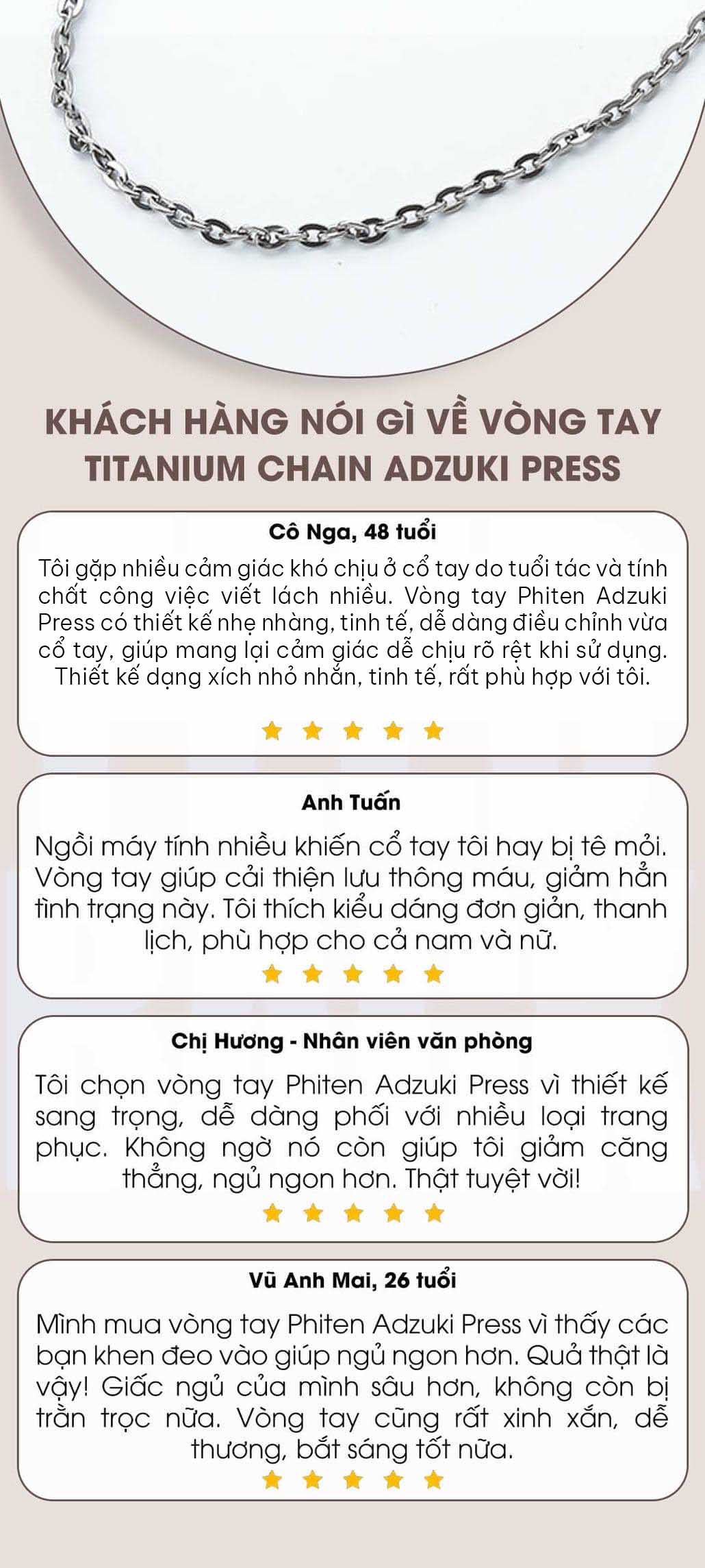 Vòng tay Phiten Titanium Chain Adzuki Press với thiết kế đơn giản nhưng vô cùng tinh tế, mang đến vẻ đẹp thanh lịch cho người sử dụng.