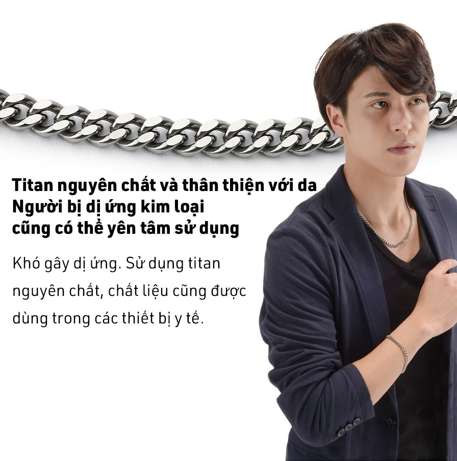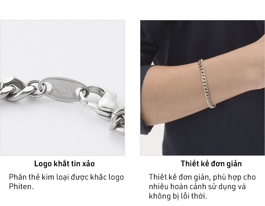 • Vòng tay Phiten Titanium Chain được chế tác từ 100% titanium nguyên chất với thiết kế dạng chuỗi cổ điển, mang phong cách tối giản và tinh tế. Bề mặt titanium ánh kim trung tính phù hợp với nhiều phong cách và dịp sử dụng