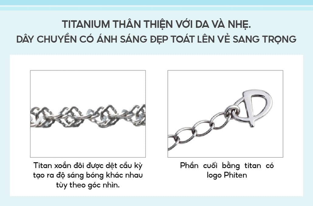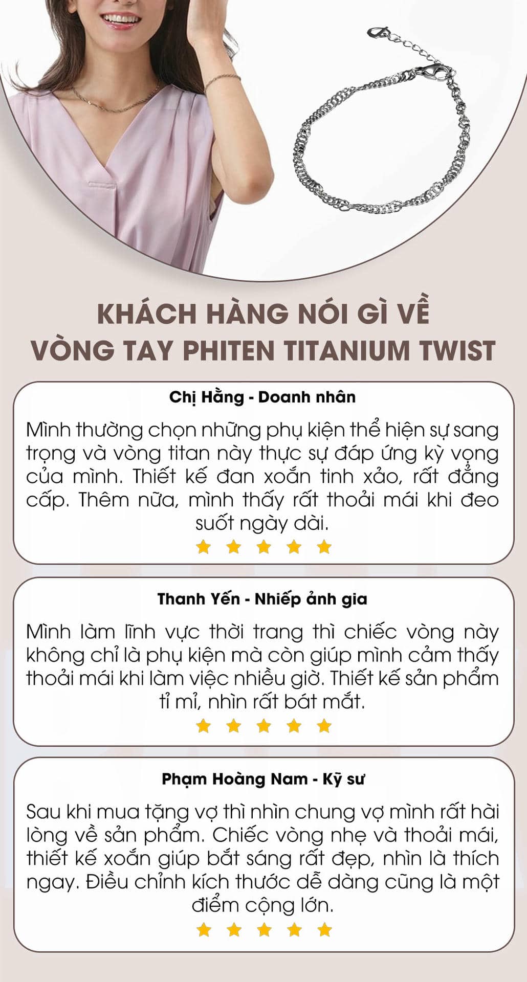 Vòng đeo tay Phiten Titanium Twist được chế tác từ 100% titan nguyên chất, với trọng lượng nhẹ và tính năng chống ăn mòn được đánh giá tích cực, mang lại sự an toàn tối đa cho người sử dụng. Thiết kế chuỗi xoắn Titan được đan tỉ mỉ tạo nên vẻ đẹp sang trọng, độc đáo, phù hợp cho mọi dịp. Móc cài với logo "P" của Phiten được in rõ nét, thể hiện sự tinh tế của sản phẩm. Vòng tay có thể điều chỉnh chiều dài thêm 5cm, giúp phù hợp với mọi kích thước cổ tay.